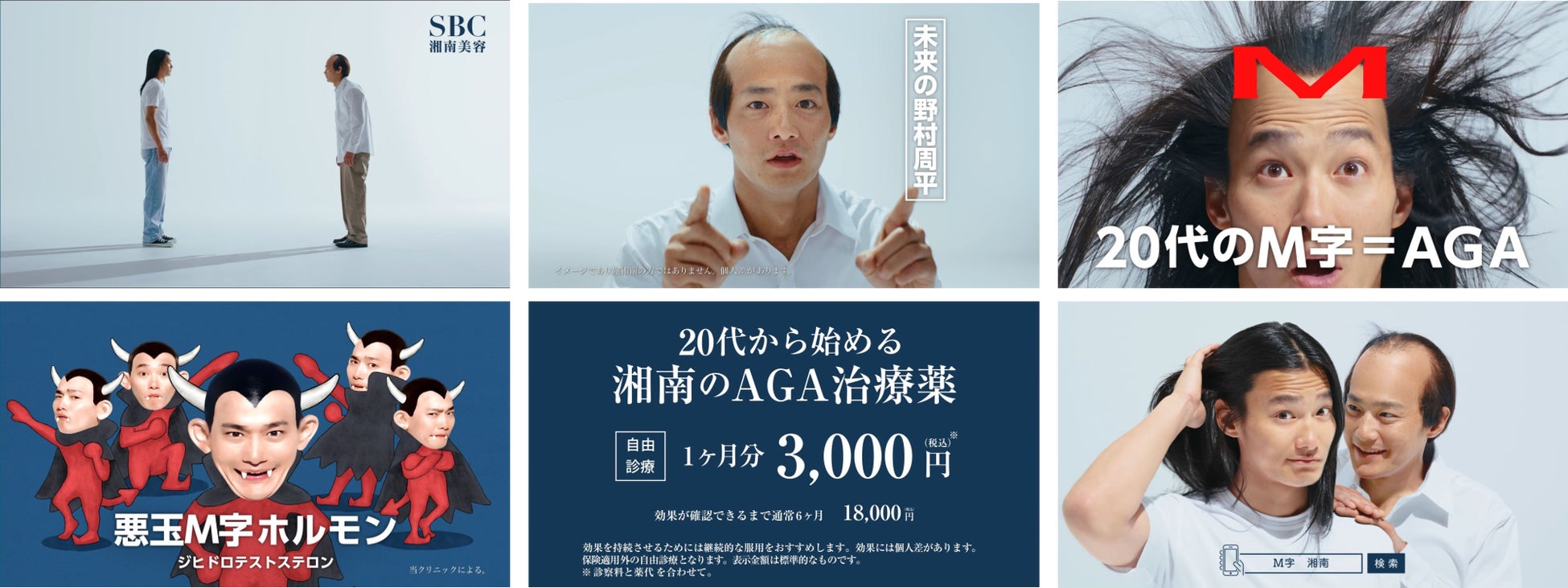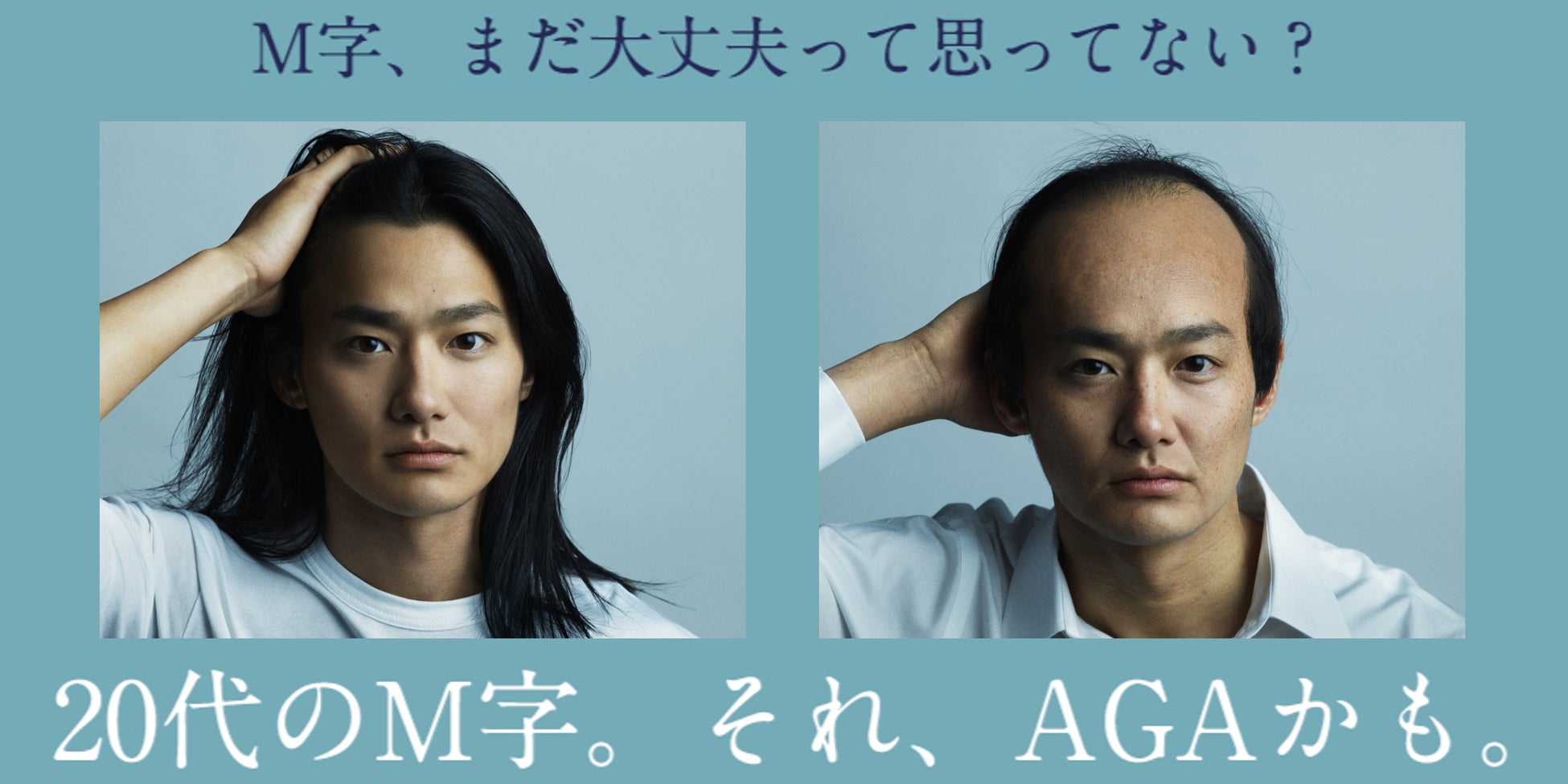 AGAの多くは生え際から進行が始まりM字型の額を形成します。20代から好発し、M字部分が拡大、全体に広がります。本CMでは、20代の額のM字はAGAという病気であること、M字の原因が悪玉M字ホルモン(ジヒドロテストステロン) に起因し、20代のいま薄毛が進行していることを理解いただき、早期AGA治療をはじめる重要性を正しく認識していただくことを目的としています。40代で薄毛になった未来の自分からの切実なメッセージに、現代の野村周平さんはどう反応するのか、その展開にも注目です。