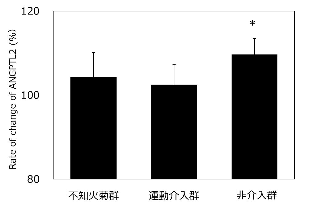 普通の生活を送る人(非介入群)に比べて血中Angptl2濃度が減少