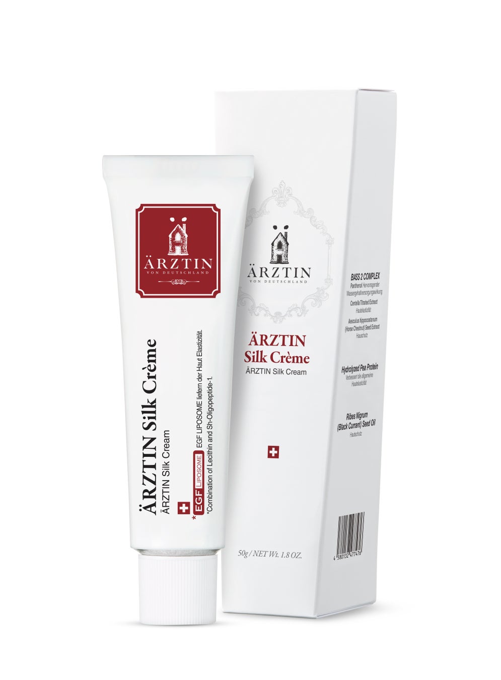 エルツティンすべてのラインアップで人気No.1*3の『シルククリーム』は、乾燥などのダメージから肌を守り潤いを与えるトータルマルチクリーム。ハリとツヤを与えるナノリポソーム化したEGF成分と2つのペプチド(FGF・IGF)、アデノシンやエンド豆エキス成分配合で肌にハリ・弾力を与えてすこやかなに保ちます。セラミドNPやアルガンオイル配合で肌にうるおいツヤを与え、ブラックカラントシートオイル、ビフィズス菌培養溶解質配合で荒れた肌を整え、明るいトーンへ導きます。お手入れ後はハリのあるぷるぷるななめらか肌に。お肌のタイプを選ばず、敏感肌などのセンシティブなお肌にも使えます。シルククリームは、発売して9年以上の実績を誇る、多くのリピーターを抱える大人気商品としてエルツティンブランドの代名詞にもなっているスキンケア商品です。べたつかずシルクのようになめらかなハリ肌を目指す、マイルドなフォーミュラで敏感なお肌にも使えます。