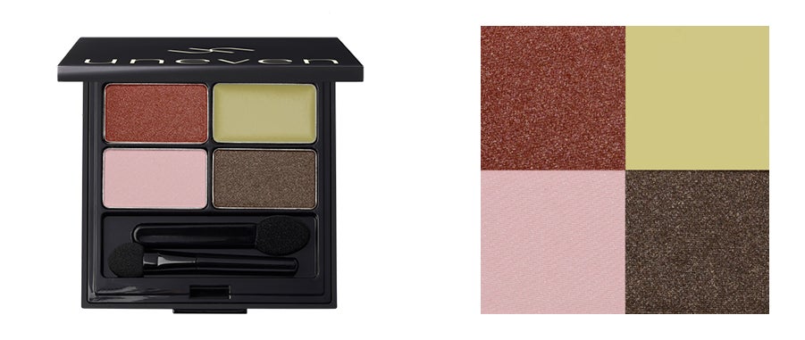 クリアな発色の4色アイパレット。2種のパウダー配合で、目元の皮脂をコントロール。高密着でよれにくい。美容保湿成分*配合。持ち運びに便利なミラーとアプリケーター付き。*ヒアルロン酸Na、セラミドNP、カニナバラ果実エキス、アラントイン