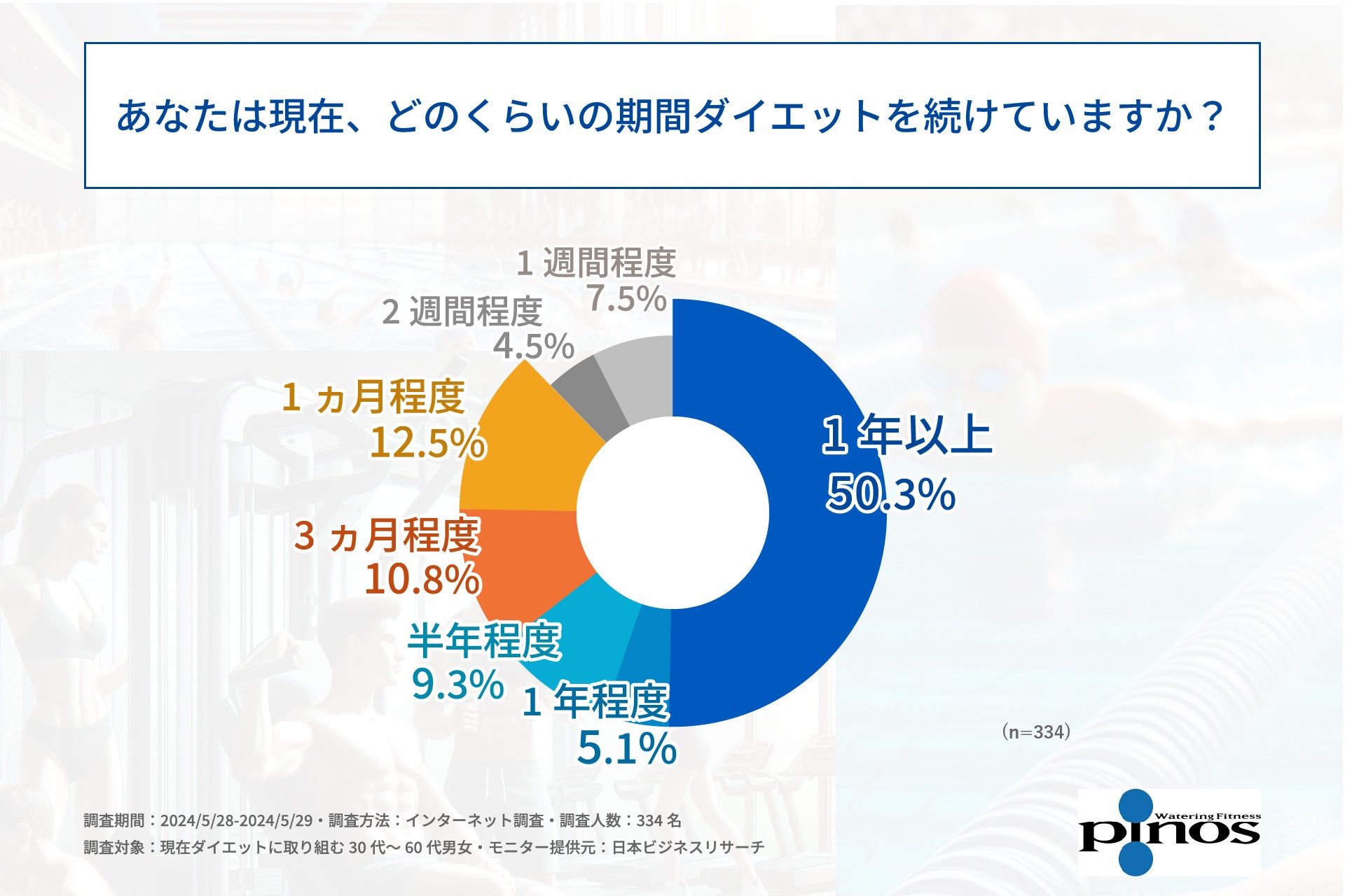 ダイエットに取り組んでいる方の半数以上が「1年以上」ダイエットを続けている
