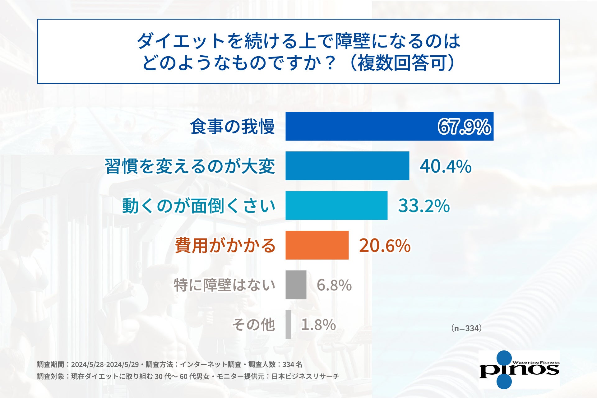 リラクゼーションフィットネスクラブを運営する株式会社ピノス(本社 京都府京都市)は30代~60代の男女の方を対象に「ダイエットの実態」に関する調査を実施しました。