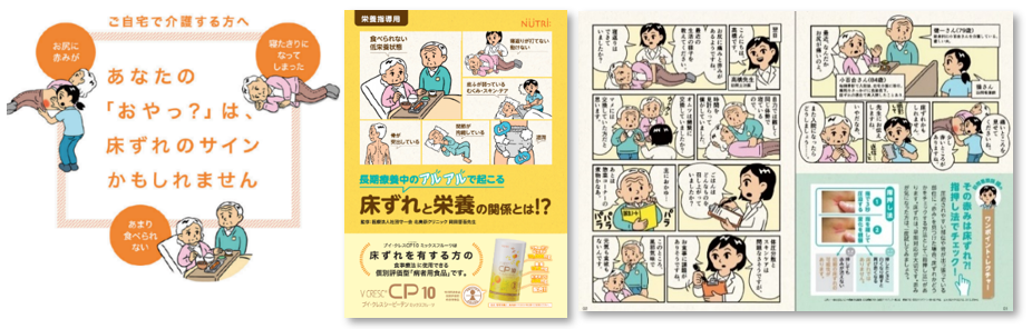 ◇褥瘡の基礎知識と治療法を解説する特設ページ・冊子を制作し、情報提供を行っています。