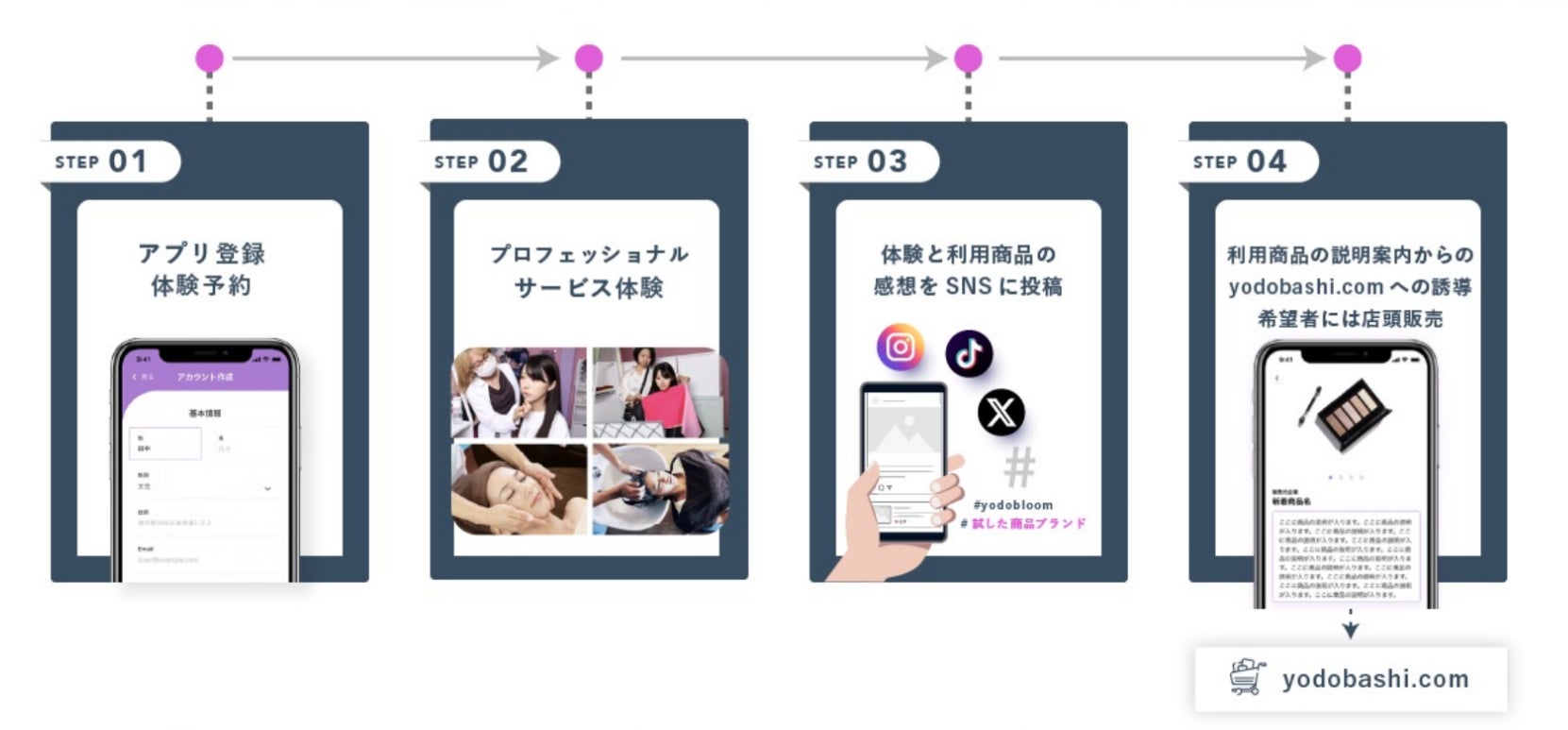 美容家電、コスメ、スキンケア、ヘアケアの各種理美容カテゴリにおける高品質なブランドの商品を、ご購入前にプロの施術とともに深く、比較体験が可能。体験を通じて商品レビューを気軽にSNSへ発信できる場所として利用ができます。
