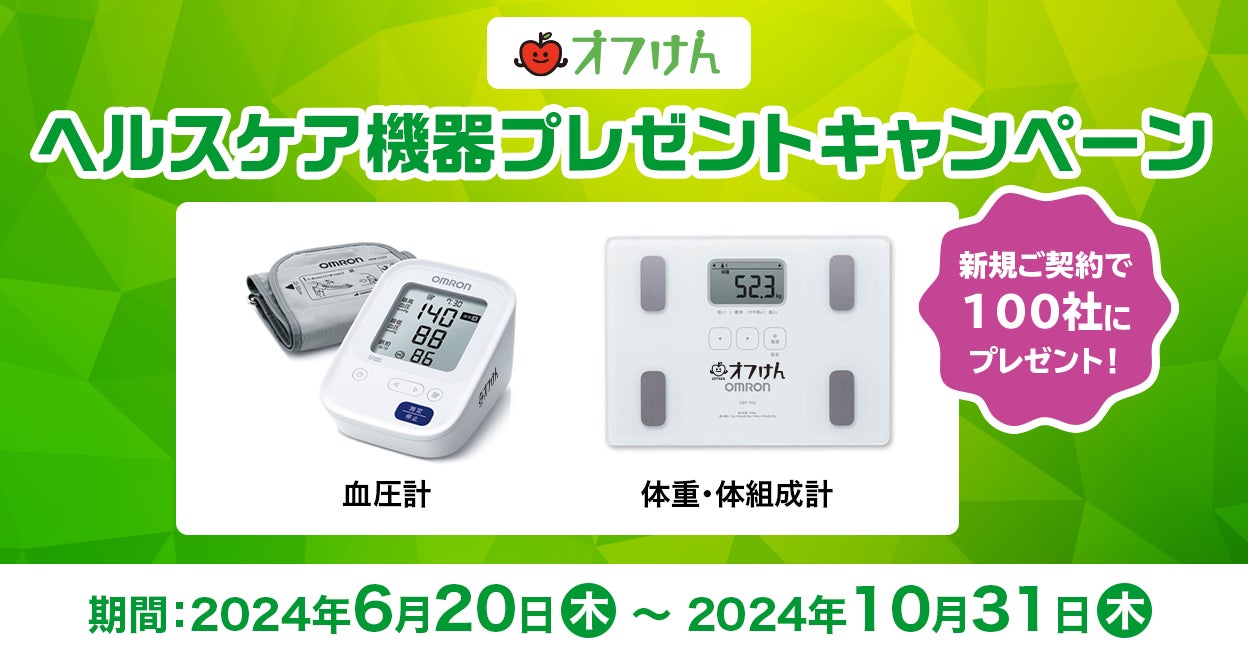 オフィスに健康を届ける「オフけん」を運営する心幸ウェルネス株式会社(本社:兵庫県尼崎市、代表取締役:山﨑 忠、以下、心幸ウェルネス)は、このたび「オフけん健康管理アプリ」又は、「オフけん健康経営優良法人2025認定取得サポートパック」を新規でご契約いただいた企業様100社に、オムロンの体重体組成計と血圧計をセットでプレゼントする「「オフけん」ヘルスケア機器プレゼントキャンペーン」をスタートしますので、お知らせいたします。