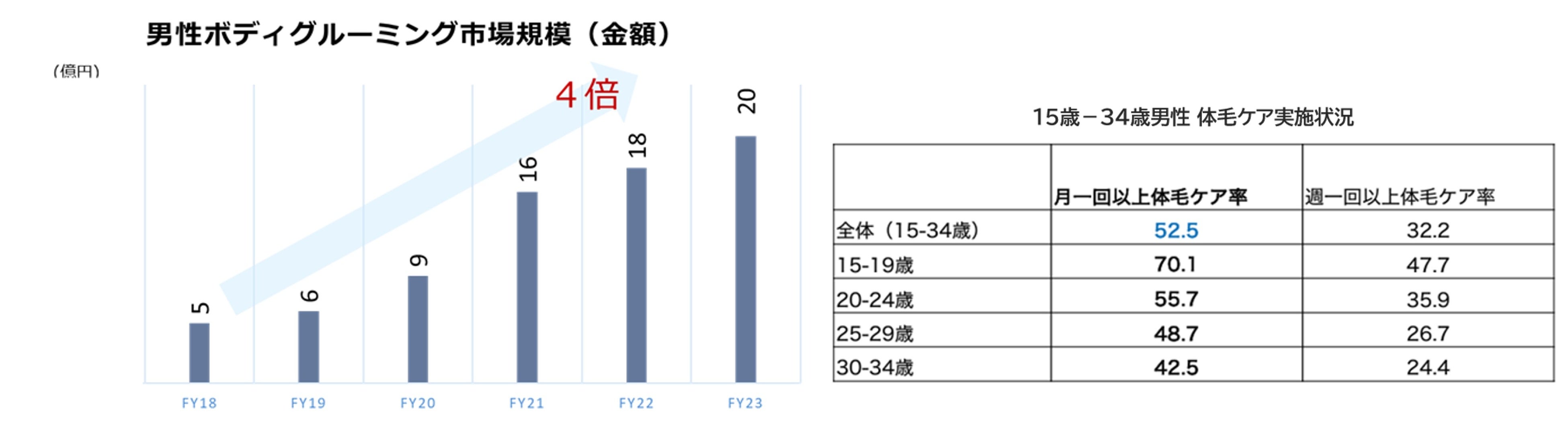 また昨今、男性の美意識の高まりにより、男性の体毛ケアやボディグルーミングへの関心は年齢に関係なく需要が高まっています。今では体毛をケアすることは男性の身だしなみとして当たり前となり、清潔感をアップさせるためのベーシックケアの1つになっています。