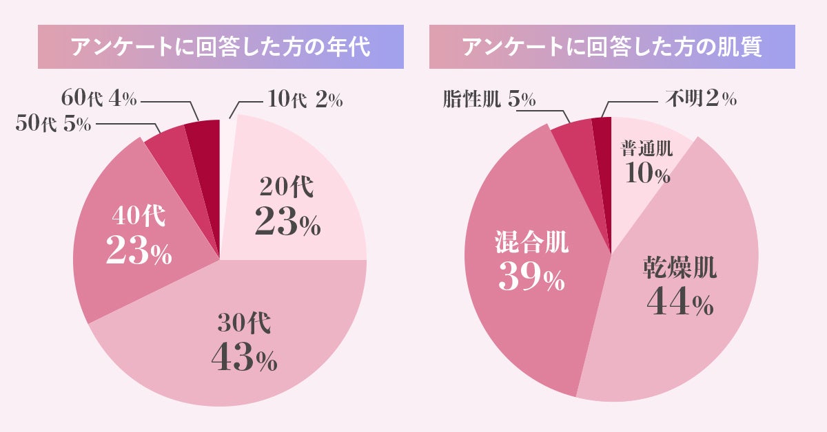 今回、回答をしてくれた方の肌質は、乾燥肌と混合肌が多い結果となりました。