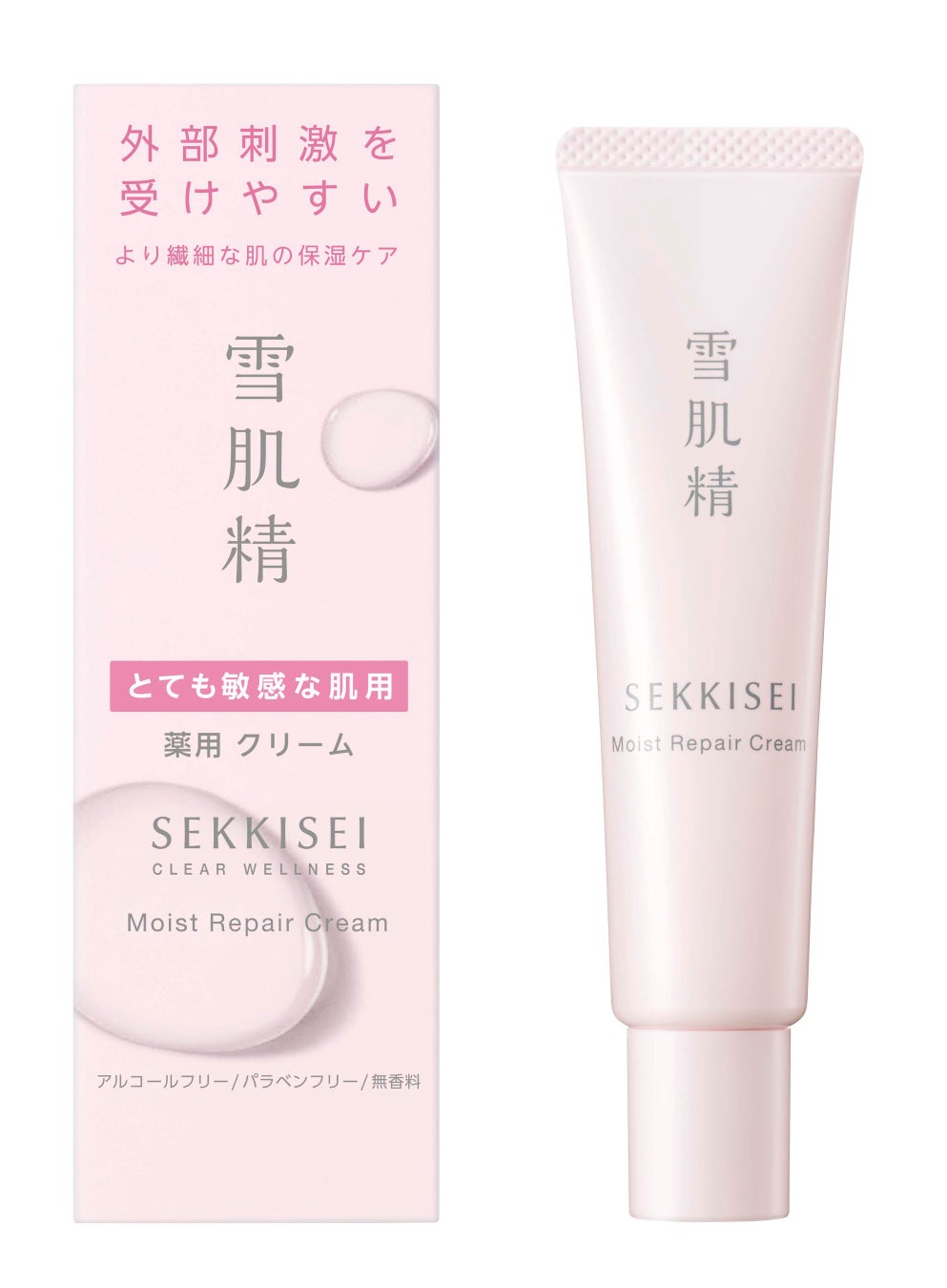 同時に、同じく「敏感・低刺激タイプ」から、新生児から使える低刺激処方の敏感肌用保湿クリーム「雪肌精 クリアウェルネス モイストリペア クリーム」を発売します。肌あれ防止の有効成分グリチルリチン酸ジカリウムを配合し、肌あれを効果的に防ぎ健やかな肌へみちびきます。なめらかに伸び広がる、まろやかでしっとりとした使い心地で、肌の摩擦感を軽減したやさしいお手入れを叶えます。顔にも体にも使用でき、これ1品で毎日の保湿ケアを完了させることができます。