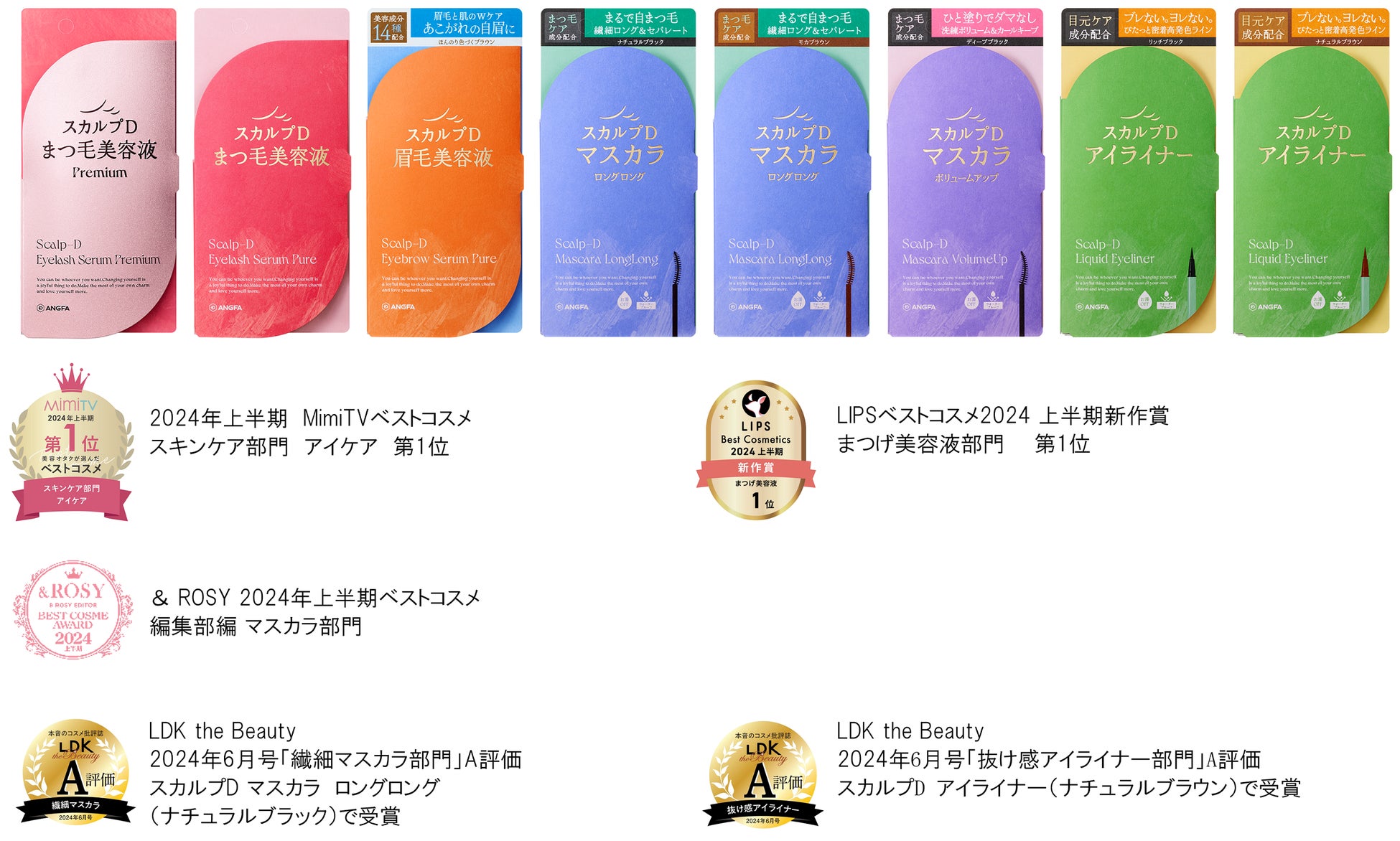 この度の受賞を含め、「スカルプDまつ毛美容液」シリーズ全体では、美容メディア・美容誌の「2024年上半期ベストコスメ」にて合計7つの賞を獲得しております。