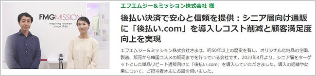 エフエムジー&ミッションの「後払い.com」導入事例はこちら。
