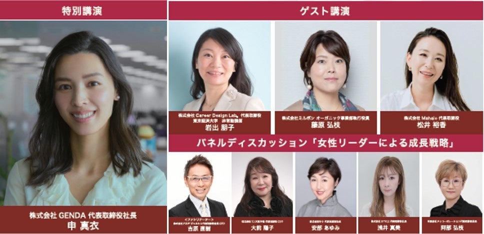 プログレスが主催するシンポジウムは、今回で4回目となります。美容業界だけにとどまることなく、現代の経営者が抱える問題をシンポジウムを通じて問題解決の糸口になることを目的に開催しています。今年は『未来を創るー女性リーダーによる成長戦略』というテーマに沿って、4名のゲスト講師による講演と、プログレスに加入している女性経営者によるパネルディスカッションを実施いたします。会の冒頭には、30代から40代の働く女性やママから絶大な人気を誇る女性ファッション誌『VERY』の専属モデルでありながら、エンターテインメント事業を展開する株式会社GENDAの創業者である申 真衣氏の特別講演も予定しています。
