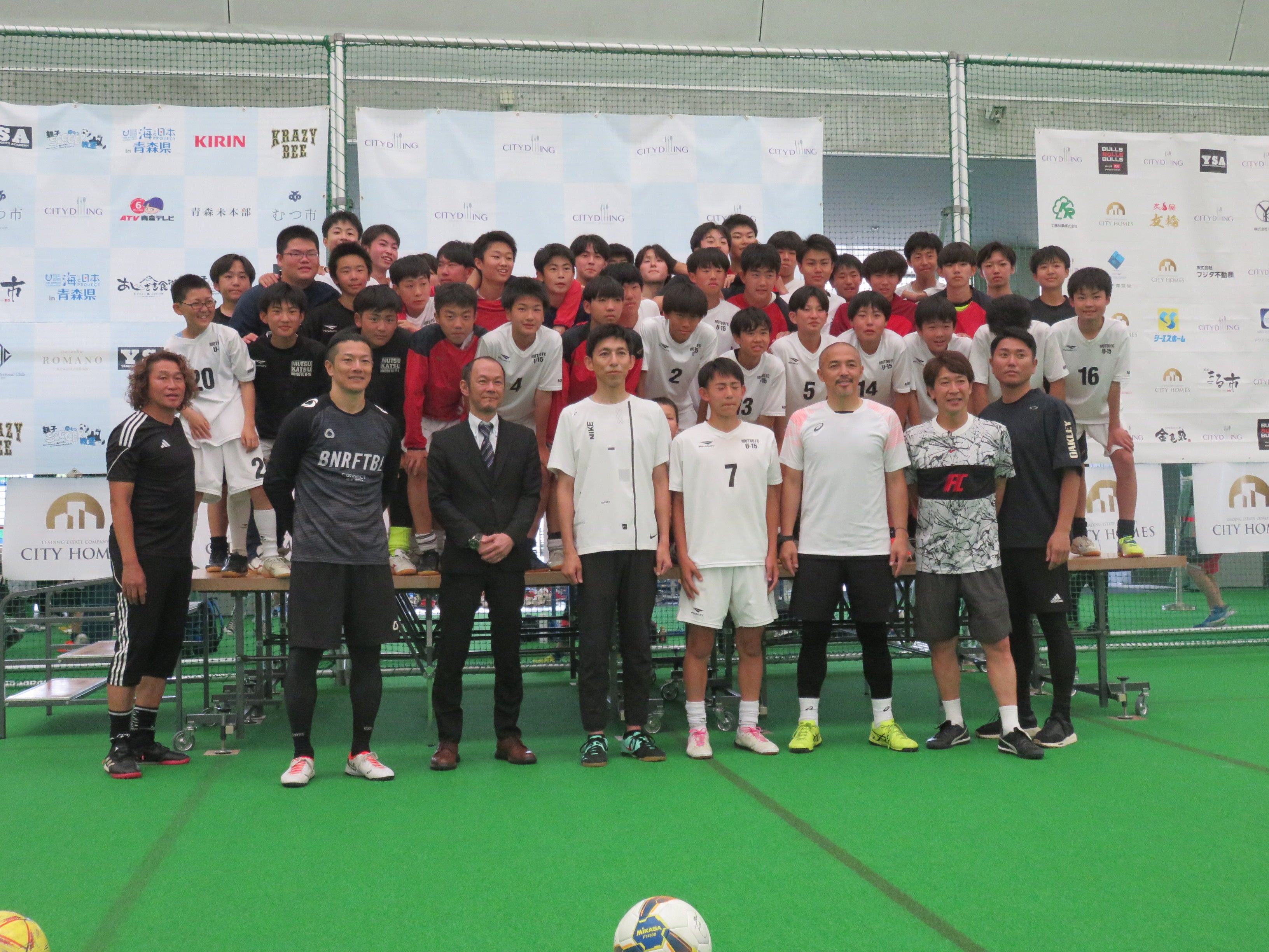 当イベントの柱となる「サッカー教室」では、元日本代表の小野伸二(おのしんじ)さん・水内猛(みずうちたけし)さん・岡野雅行(おかの・まさゆき)さん・原 一樹(はらかずき)さんらが講師として参加。また、青森県むつ市長・山本知也(やまもとともや)氏もサッカー教室内で開かれたミニゲーム、また当イベント内で実施したむつ湾周辺のゴミ拾いに参加されました。