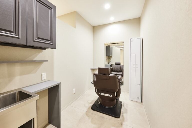 「完全個室」のプライベート空間で、薄毛の男性のヘアデザインに特化した専門のスタッフが丁寧にカウンセリング、カット、スタイリングを行います。施術後は専用のツールを使って仕上がり写真を共有し、ご自宅での再現性をアップします。