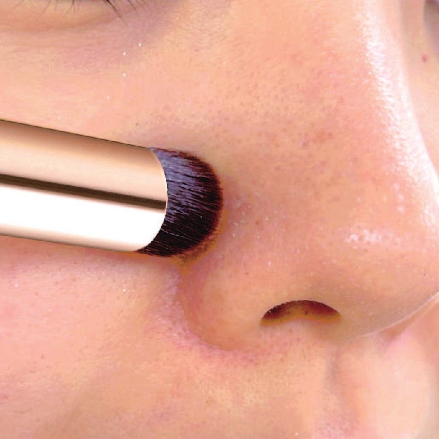 柔らかく指先のようにラウンドした形状の筆先が小鼻や目のくぼみなどの凹凸にもしっかりフィット。頬のシミやニキビ跡もトントンと重ねるだけで簡単にカバーします。