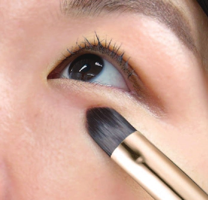 ほどよいコシとしなりのあるフラットな形状で目元、口角、眉、傷跡の凹凸などのキワまで塗りやすい。小さなシミ、ニキビ跡、白斑などの細かい箇所は先端部分を使ってピンポイントでカバーします。