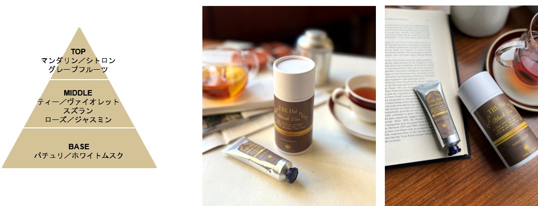 SPF40・PA+++で夏から秋にかけての日焼けが気になる季節にぴったりのUVハンドクリーム。意外と日焼けしやすい手の甲へ、保湿もしつつ、しっかりとUVカットしてくれる優れもの。さらに、酸化チタン配合で手肌のトーンアップも叶えます。ポーチにも入る持ち運びやすい30mlサイズで、日差しが気になるときにいつでもどこでもUVケアができます。ブラックティーのほどよい甘さの中にも渋みも感じられるオリエンタルな香りは、トップに“マンダリン・グレープフルーツ・シトロン” 、ミドルに“ティー、ヴァイオレット、スズラン、ローズ、ジャスミン”、ベースに“パチュリ・ホワイトムスク”をブレンド しています。