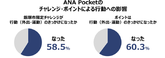 参加者の約6割がANA Pocketの飯塚市限定チャレンジおよびポイントが「行動(外出・運動)のきっかけになった」と回答しました。