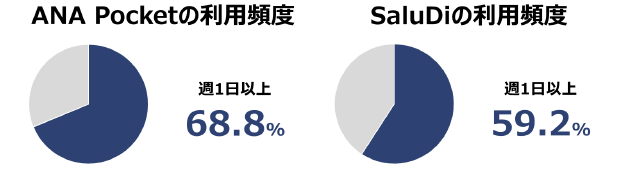 実証後アンケートより、ANA Pocketを週1回以上利用したと回答した参加者の割合は、約7割でした。SaluDiを週1回以上利用したと回答した参加者の割合は約6割でした。