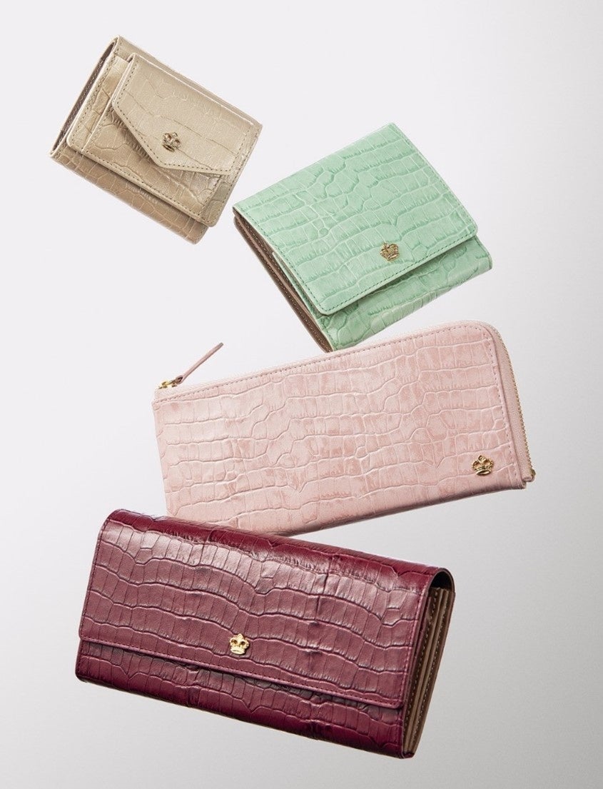 ・現在、HAMANOでは展開のないクロコの型押し財布を今回特別に復刻。アテニアだけのオリジナルカラーで製作。