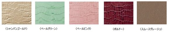 ・ペールグリーン:淡いトーンが爽やかなグリーン。クロコ調の型押しの陰影がリッチ。