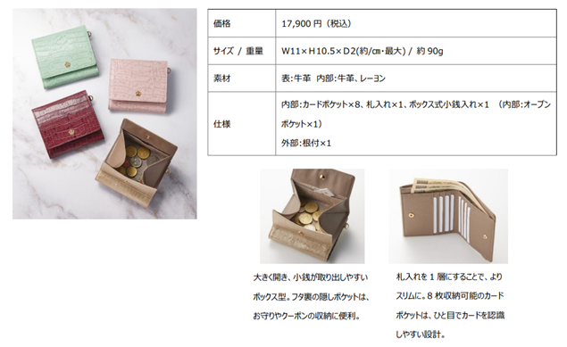 ・現在、HAMANOでは展開のないクロコの型押し財布を今回特別に復刻。アテニアだけのオリジナルカラーで製作。