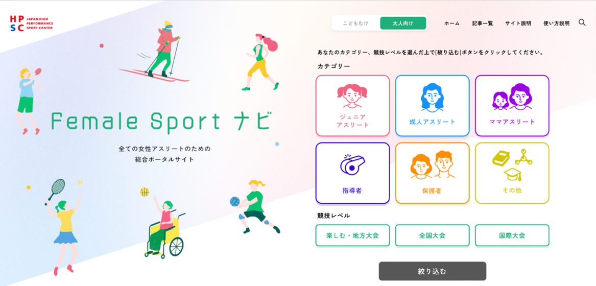 このたび本プロジェクトの一つとして、全ての女性アスリートのための総合ポータルサイト「Female Sport ナビ」を開設しました。このサイトは、女性アスリートが健康に競技を継続する上で重要な情報を、わかりやすく解説、提供しています。