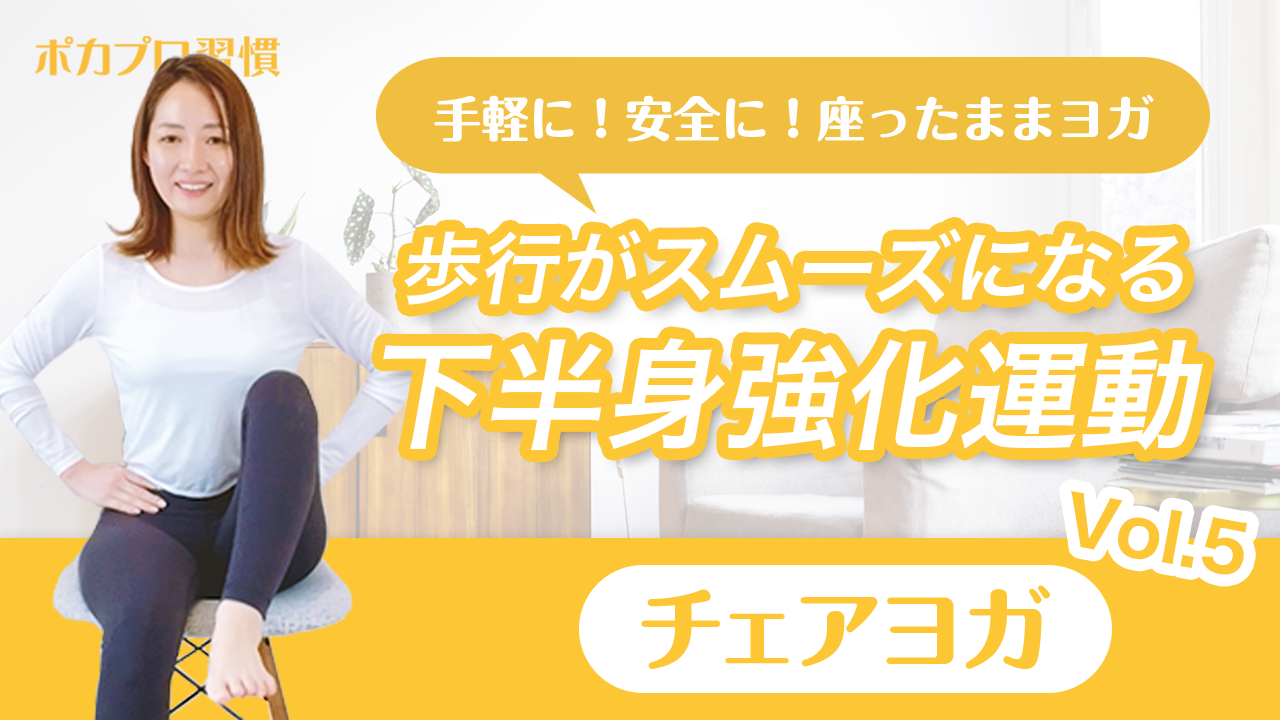 年齢や運動制限、場所などを問わず、気軽にトライできるチェアヨガ。 7月1日に公開された第5弾は、歩行がスムーズになる下半身強化がテーマです。 これまで公開されたVol.1~4のチェアヨガもどれもすぐできるものばかり。ぜひチェックしてください。