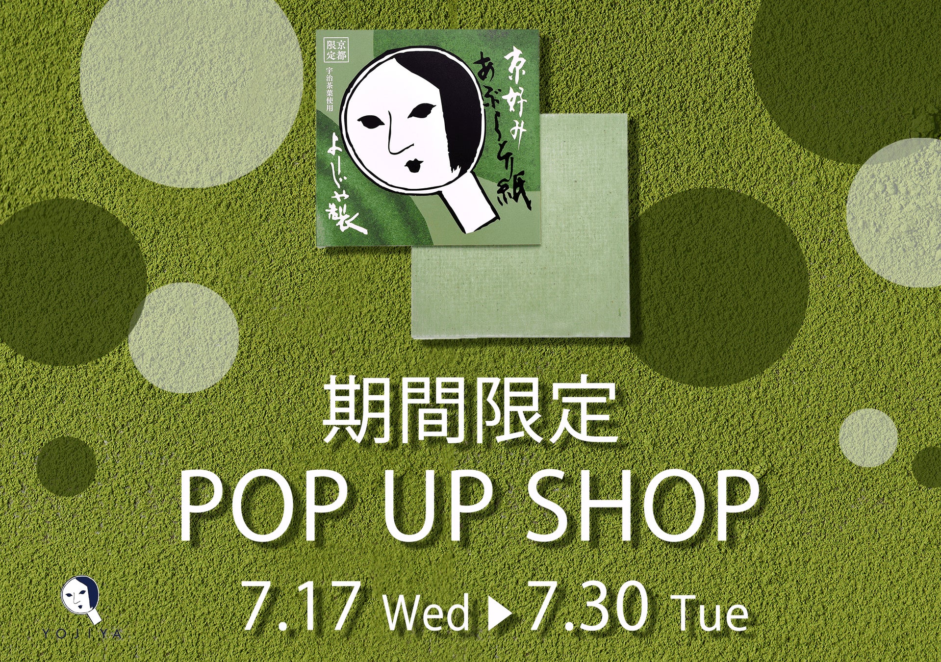 ・POP UP会場or2階 常設店舗にて、ひんやりアイテムなどの対象商品を含む1,000円(税込)以上のご購入のうえ、合言葉『よじこの夏休み』をスタッフにお伝えいただいたお客さまに、「よーじや ジェイアール京都伊勢丹店限定デザイン 千社札」を1枚プレゼントいたします。