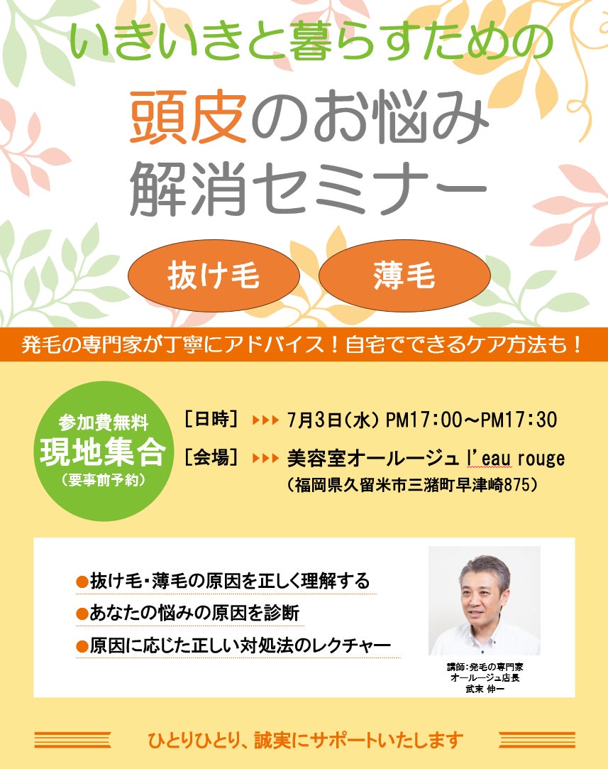 いきいきと暮らすための 頭皮のお悩み解消セミナー(抜け毛・薄毛)