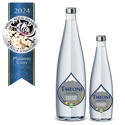 「THEONI CARBONATED NATURAL MINERAL WATER IN GLASS BOTTLE(テオニ)」(炭酸あり/ビン)(4年連続受賞)