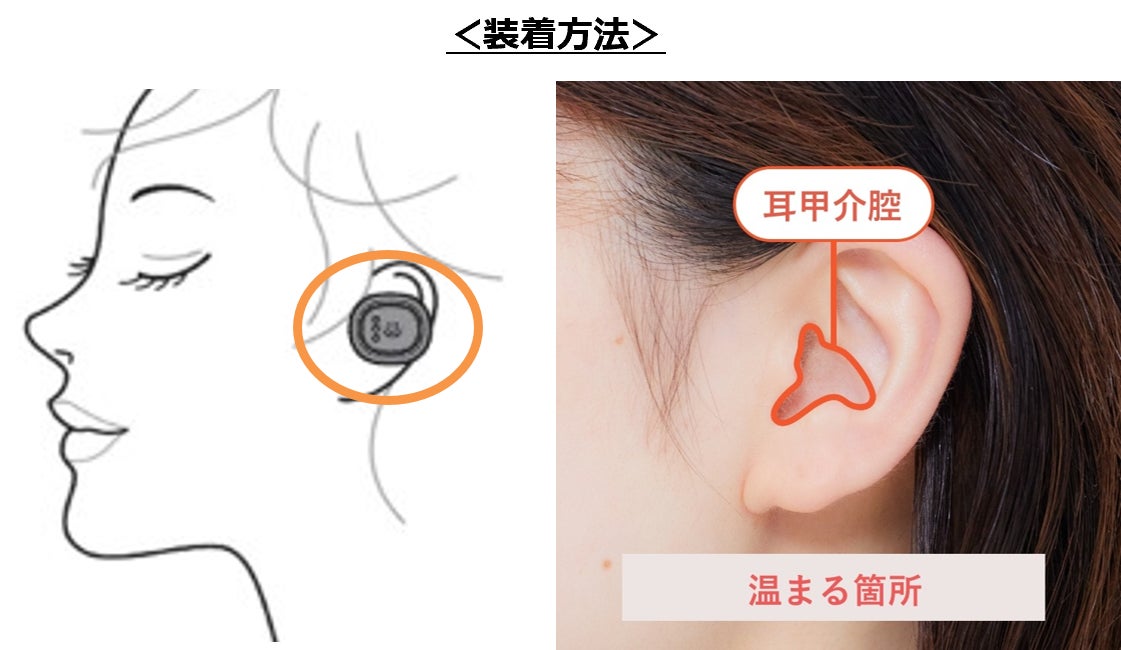 【イヤラボ】は、耳栓タイプの本体を耳に装着することにより、自律神経をはじめとした様々な神経の集まる耳甲介腔を温めて気持ちをリフレッシュし、遮音効果により安眠へ導いたり、くつろぎタイムをアップデートするイヤーウォーマーです。