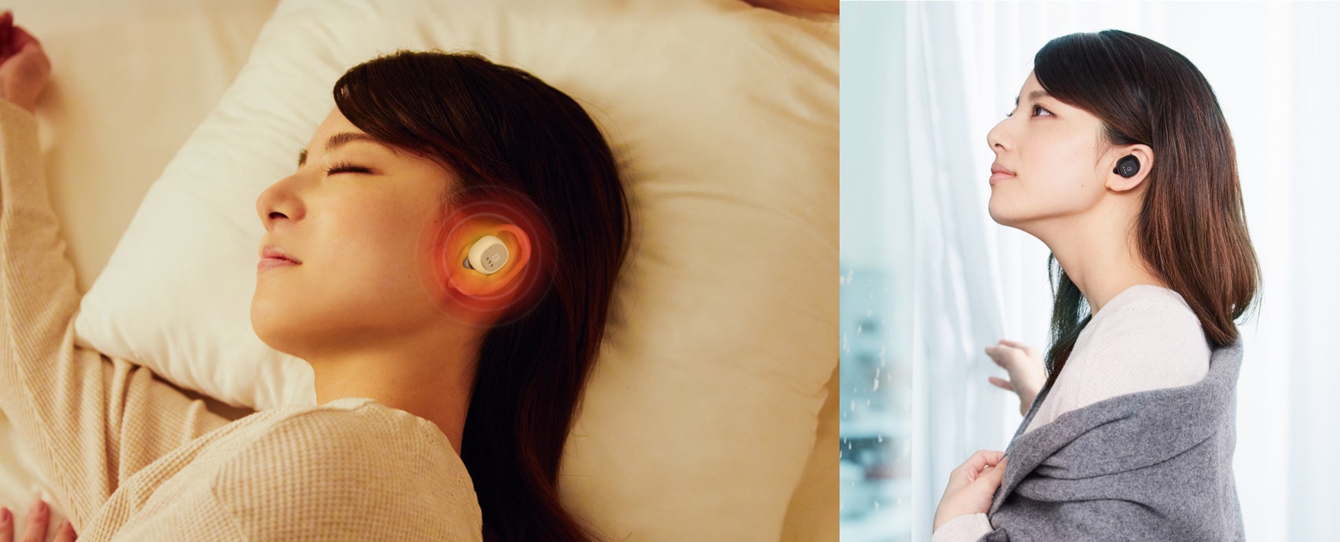 また、耳へ挿入する部分は市販のイヤホンと同様にイヤーピースの交換が可能です。付属の3サイズのイヤーピースを付け替えたり、ご自身でお持ちのものに付け替えていただくことで快適なフィット感を実現。しっかりと周囲の音を遮断することで安眠へ導きます。