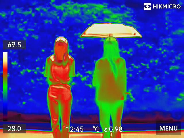 becauseスーパーライトSUN&RAINを使った場合と無しの場合の比較テストでは、約3分後の身体表面温度に15℃以上もの差が生じました。(撮影場所:東京都世田谷区 撮影日時:2024年7月3日 12:45 天候:晴)