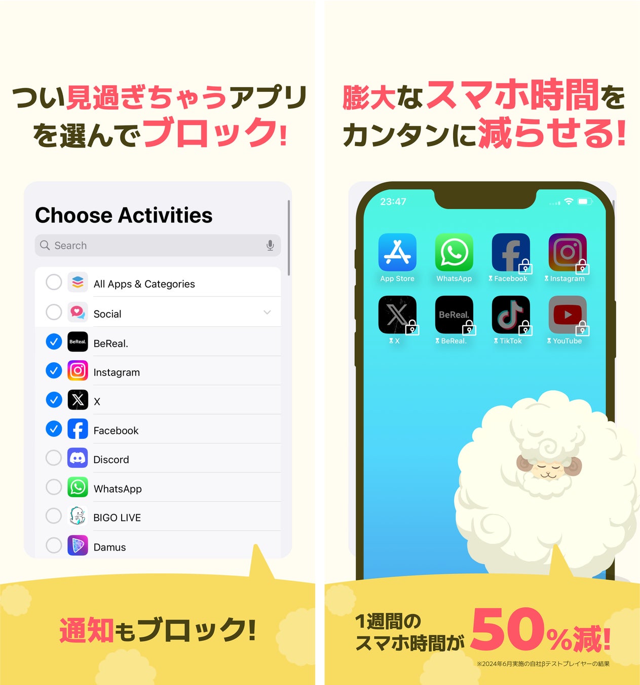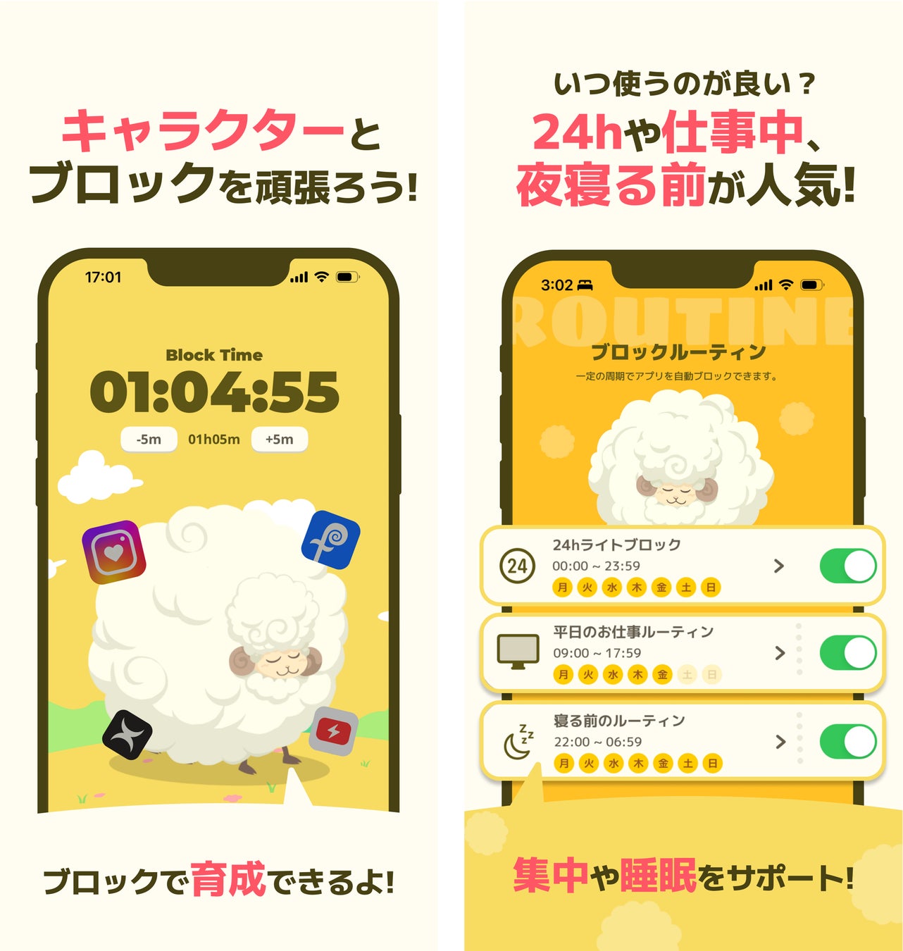 1年で1440時間!?膨大な「スマホ時間」をカンタンに減らせるスクリーンタイムアプリ「DREAM SHEEP」。つい見過ぎちゃうアプリを封印し、集中&寝不足をサポート!