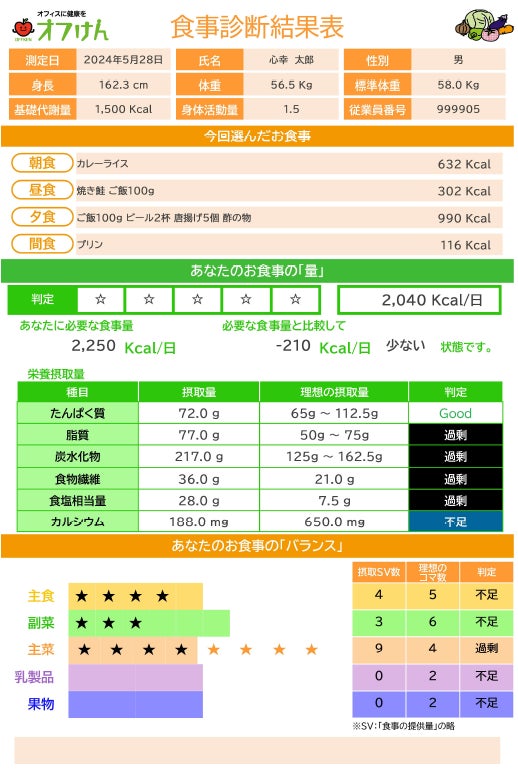 オフィスに健康を届ける「オフけん」を運営する心幸ウェルネス株式会社(本社:兵庫県尼崎市、代表取締役:山﨑 忠、以下、心幸ウェルネス)は、このたび新サービス「食事診断」をリリースしましたので、お知らせいたします。