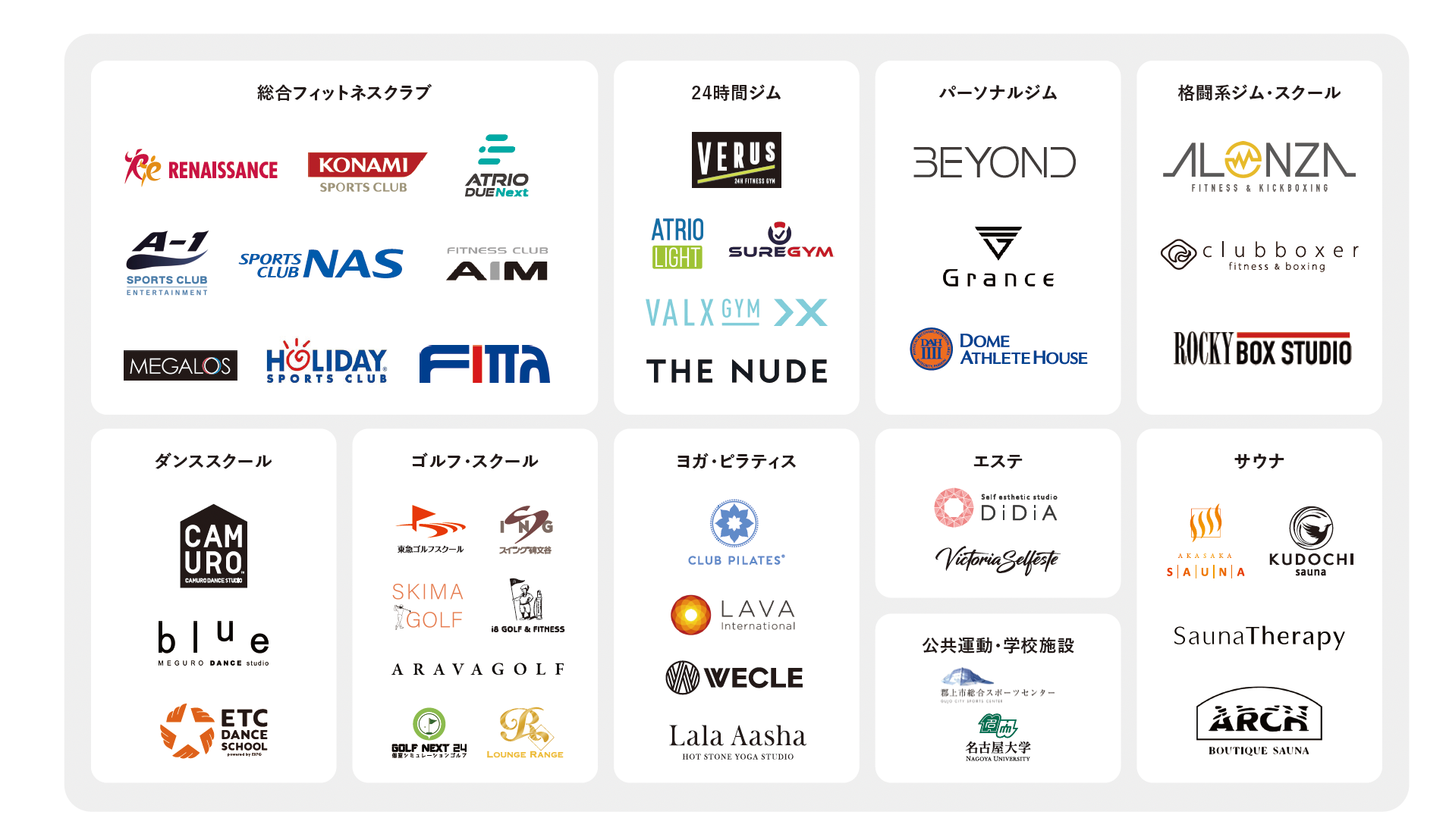 フィットネスクラブ・運動スクールなど、大手・中小さまざまな規模に7,000店舗以上導入