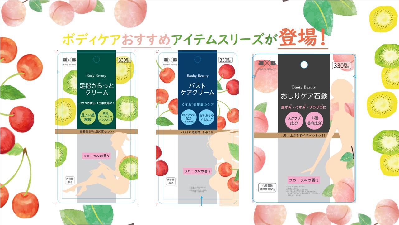 ブランド名の由来は、身体の3つのパーツ『胸(Booby)』『お尻(Booty』『全身(Body)』の3つ『B』から生まれたもの。それぞれのボディパーツごとにフルーツの「みずみずしさ」と「可愛らしいフォルム」をテーマとした商品設計となっています。商品開発には女子高生が参加、「バストのお手入れは常識」「ヒップで勝負したい!」「コストを気にせずたっぷり使いたい」「手軽に毎日、気になるボディのパーツのケアを楽しみたい」といった女子のワガママな声に応える商品が誕生しました。
