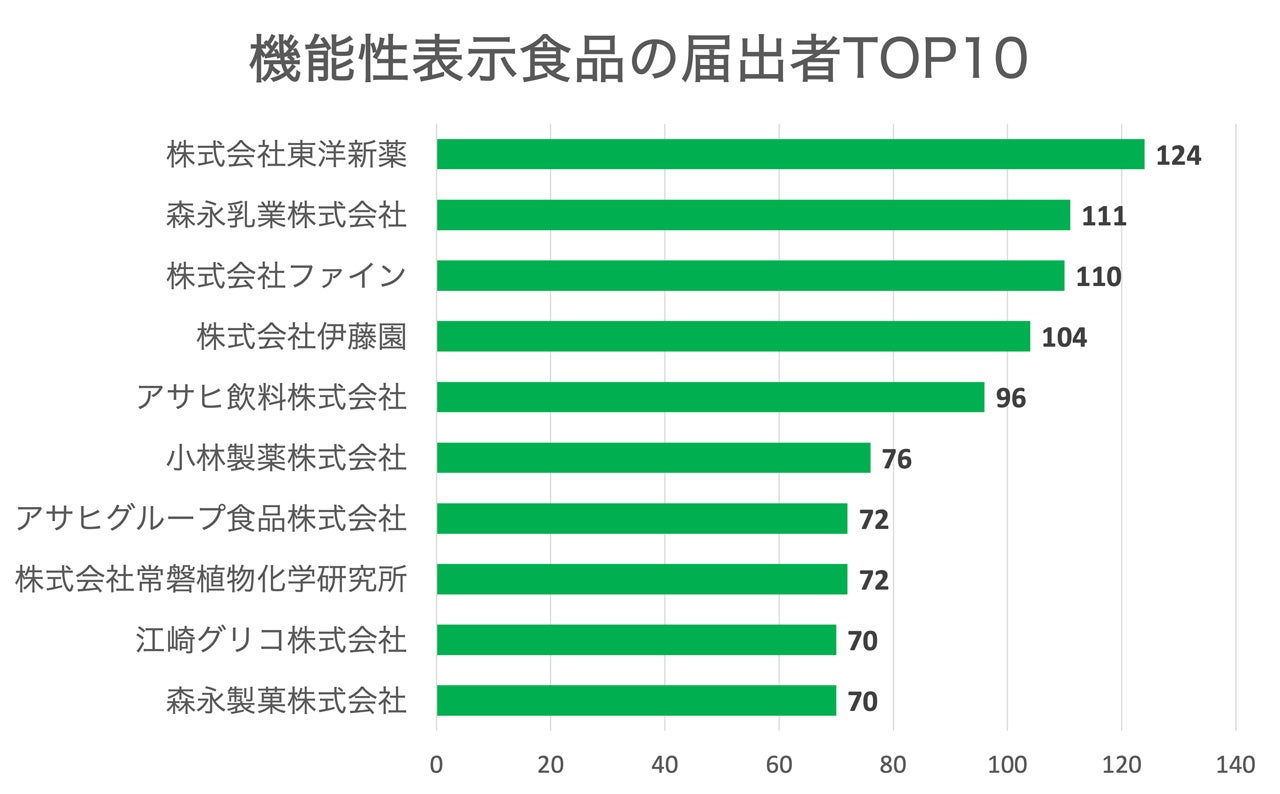 ※ここから下の集計では、消費者庁の機能性表示食品データベースに含まれていない3件は集計対象外です。
