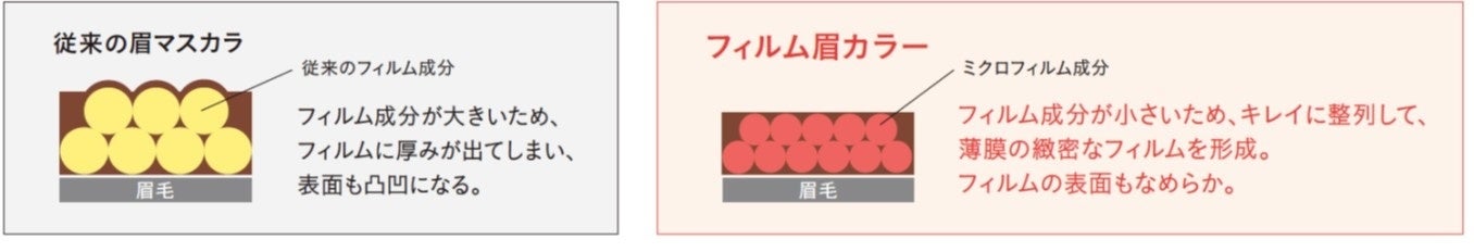 さらに、眉毛1本1本に、ミルフィーユのように層を重ねる薄膜のフィルム層が形成されるため、発色の良さも実現。