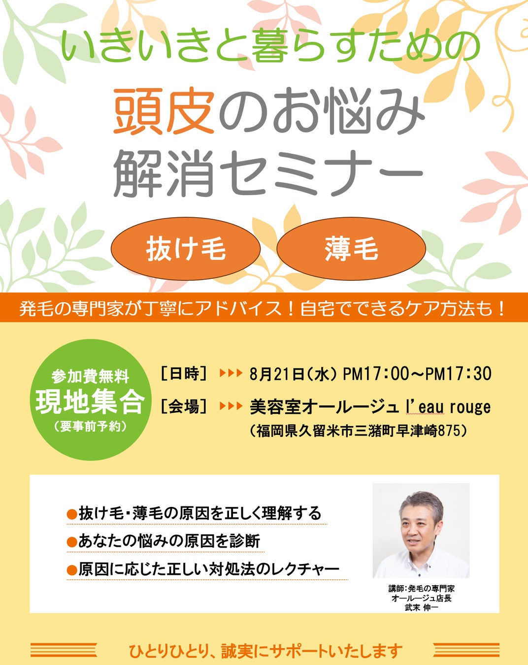 いきいきと暮らすための 頭皮のお悩み解消セミナー(抜け毛・薄毛)