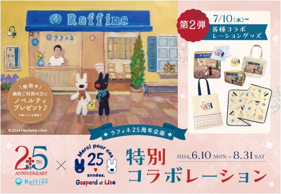 株式会社ボディワークホールディングス(住所:東京都中野区東中野、代表取締役:清水秀文)のグループ会社である株式会社ボディワーク(代表取締役:清水秀文、住所:東京都中野区)が運営する「リラクゼーションスペース ラフィネ」は、おかげさまでブランド設立25周年を迎えます。これを記念し、同じく原作誕生25周年を迎えるフランス生まれの人気絵本キャラクター「リサとガスパール」との特別なコラボレーション商品第2弾を、2024年7月10日(水)より、ラフィネ店舗と公式通販ラフィネマルシェにて数量限定販売いたします。