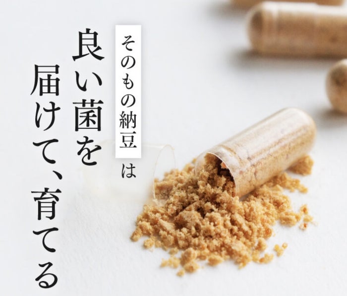 納豆をフリーズドライ(凍結乾燥)したものをパウダー状にし、カプセルにギュッと詰め込みました。カプセルは植物性で体に負担がないものを使用しています。カプセルタイプなので、好きなタイミングで手軽に摂ることができます。ウォーキングやジョギングといったトレーニング感覚で、腸活を習慣化できるサプリメントとして最適です。「そのもの納豆」は、納豆の豊富な栄養をまるごと、さらに、善玉菌を増やす腸活に最適な“納豆菌”を効率的に手軽に摂ることができる注目の商品です。