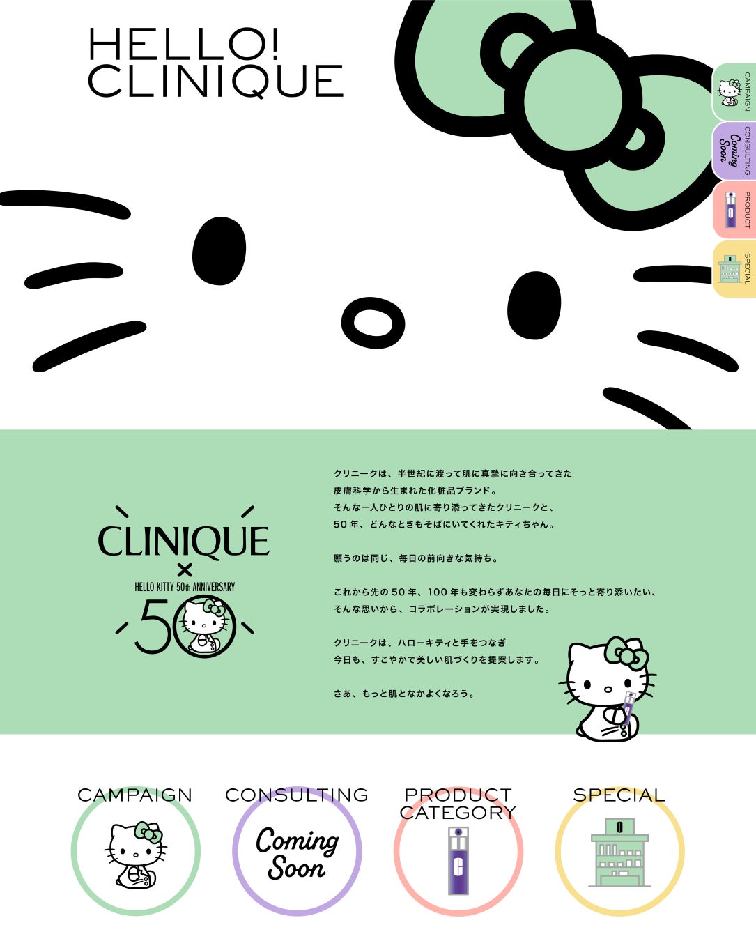 50年、世界中になかよくを届け続けてきたハローキティと、一人ひとりの肌に寄り添ってきたクリニークが手をつなぎ、7月31日(水)から「HELLO! CLINIQUE」をコンセプトにキャンペーンを開始。