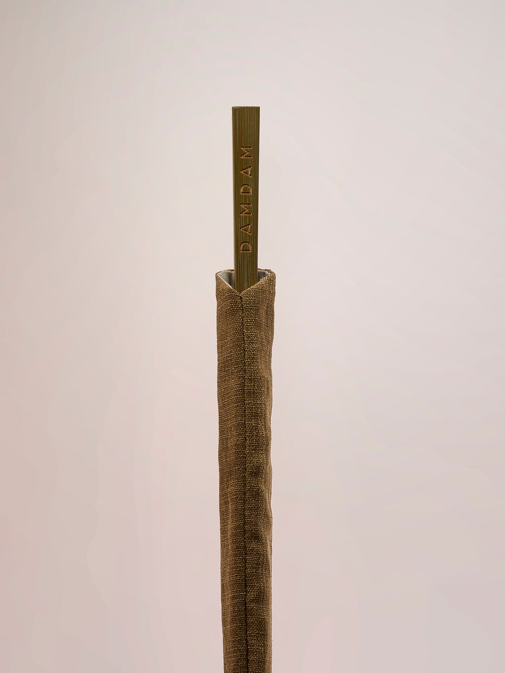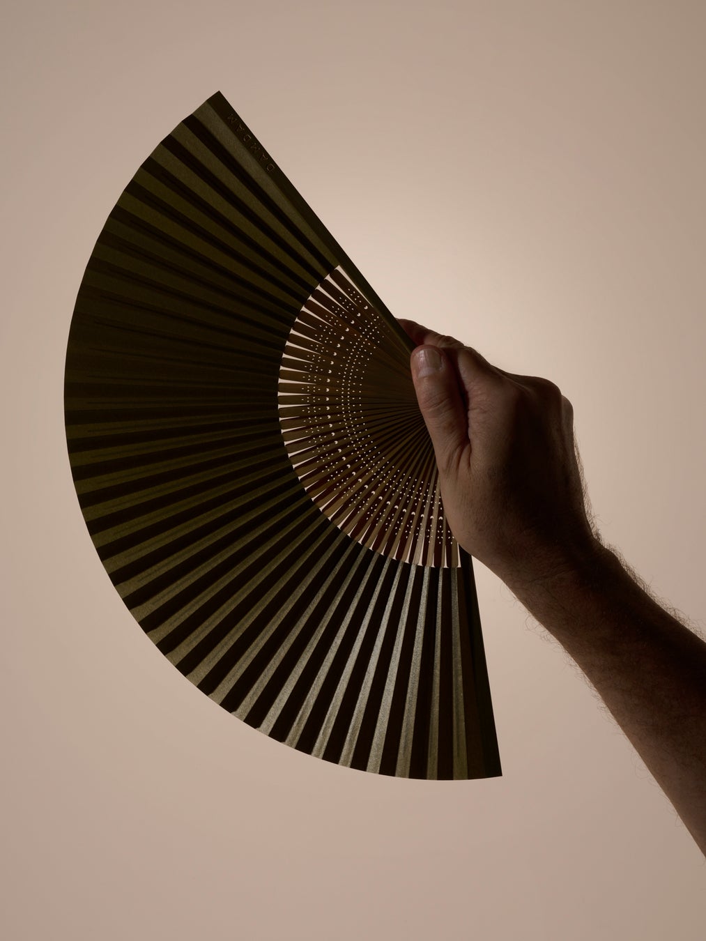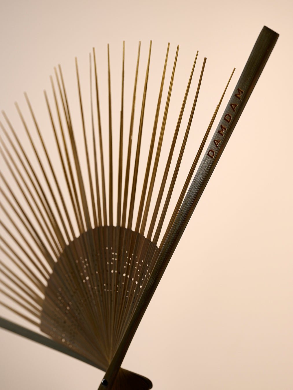 京都・滋賀の職人が手作業で仕上げた京扇子は、扇面にキーカラーの1つである抹茶グリーンの和紙を使用し、親骨にはDAMDAMのロゴをあしらいました。扇子の「扇ぐ」という所作は、自身が涼をとるためだけではなく、周囲へ涼を感じさせたり、その所作の美しさが人を魅了します。