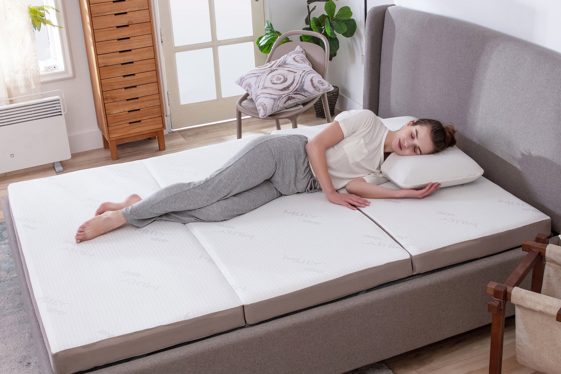 エムリリーのマットレスを体験して特に感じたことは、他のマットレスでは感じたこのとのない「適度な柔らかさと安定感」です。マットレスの上部には、低反発と高反発のいいところを融合した独自の「優反発」というウレタン技術を、下部には高反発素材の二層構造を用いることで底付きを感じず、安定感が更に増す印象です。