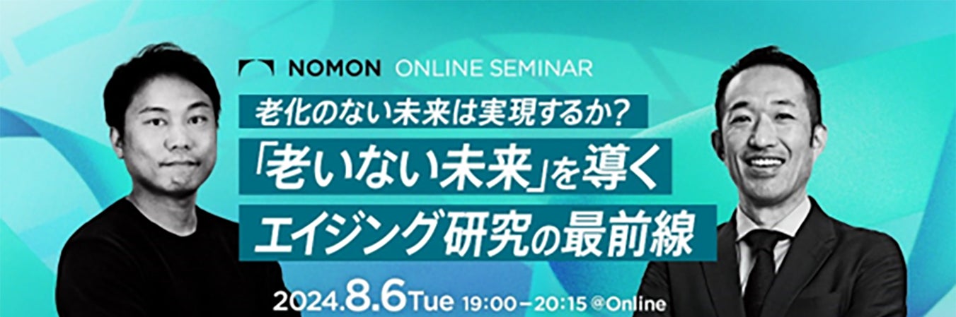帝人グループのNOMON株式会社(本社:東京都千代田区/代表取締役CEO:山名慶、以下 NOMON)は、オンラインセミナー『老化のない未来は実現するか?「老いない未来」を導くエイジング研究の最前線』を2024年8月6日(火)19:00に開催いたします。