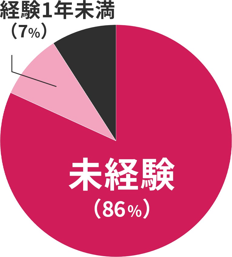 また、未経験者が86%なので、周りとの差を気にすることなく初心者でも楽しめます。
