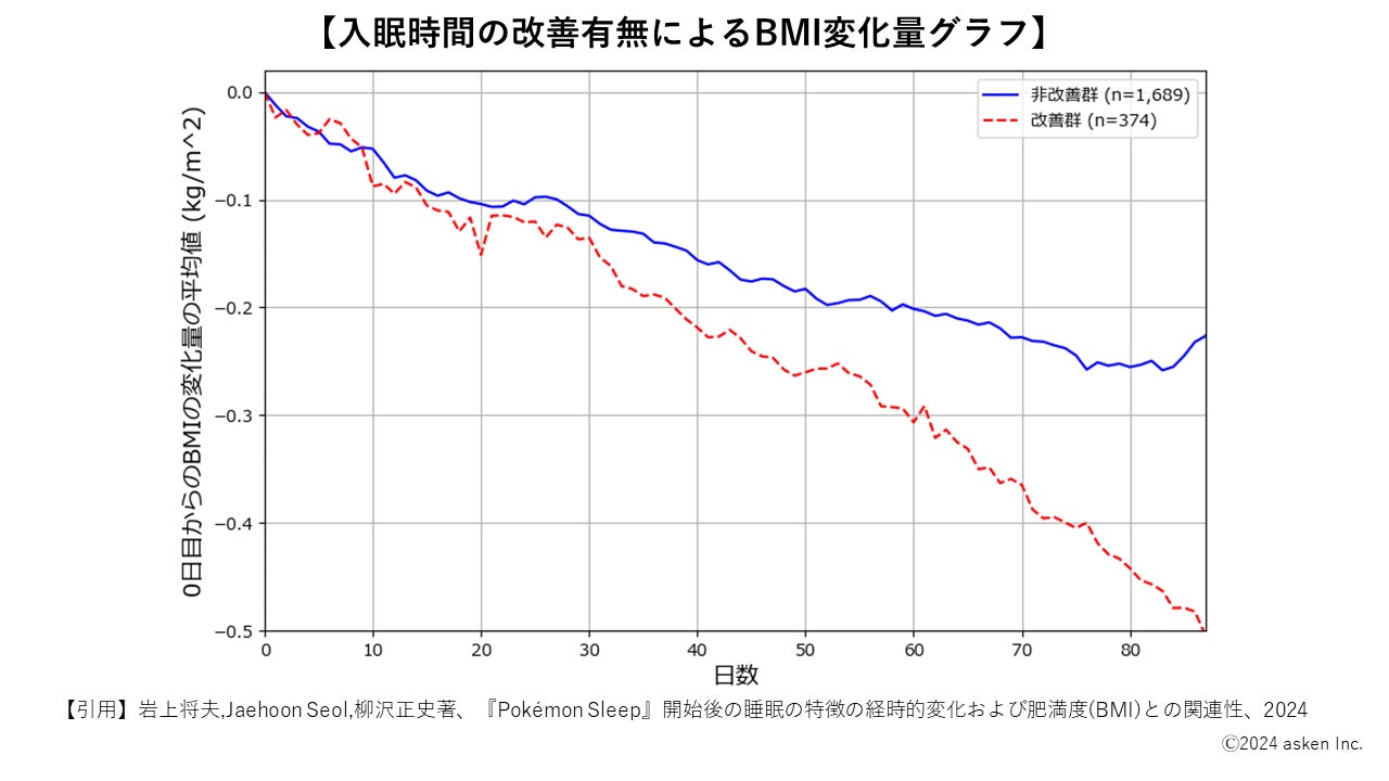 今回の調査では『Pokémon Sleep』を90日間以上継続利用し、並行して食事管理アプリ『あすけん』で一定以上の日数・条件で体重を記録した、約2,000人を対象に実施いたしました。