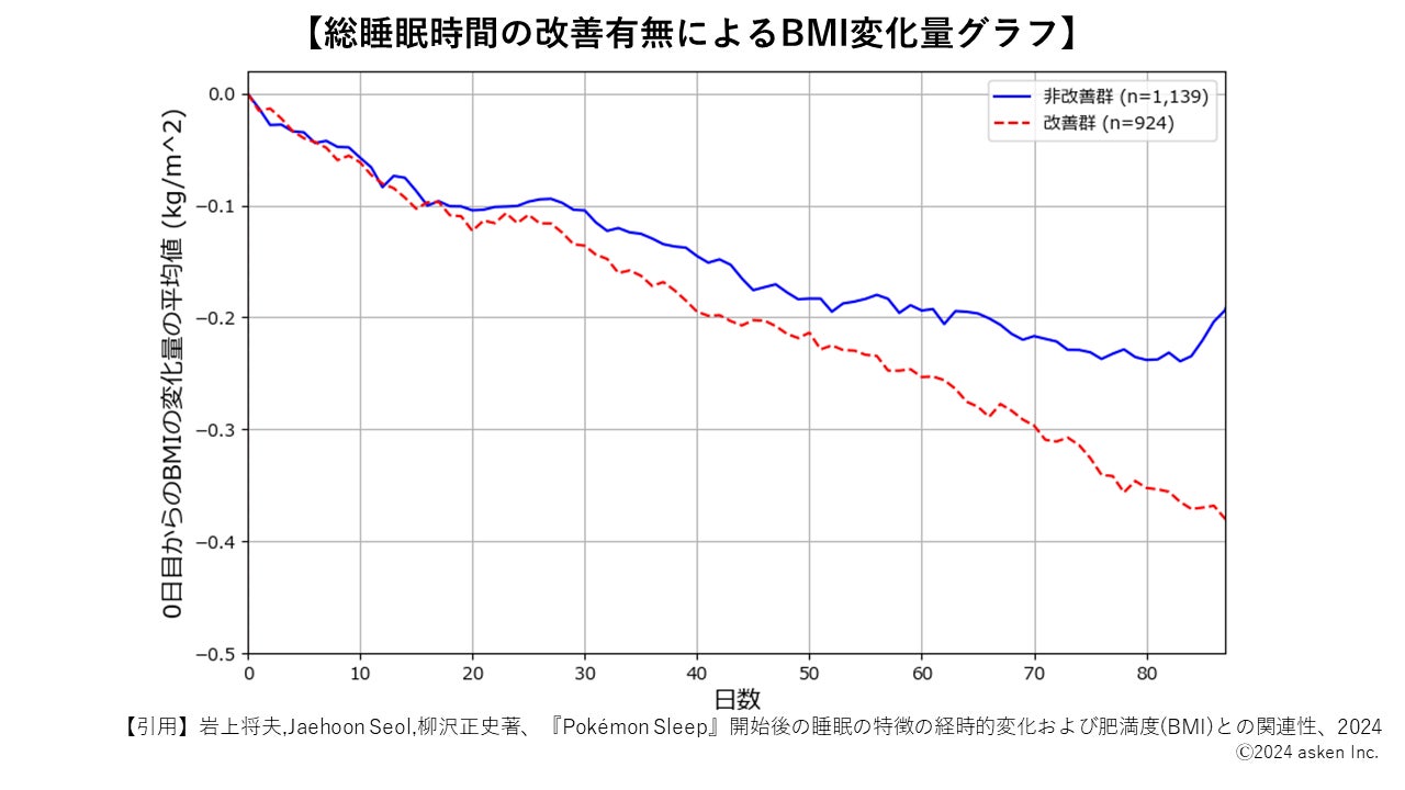 【総睡眠時間の改善有無によるBMI変化量グラフ】
