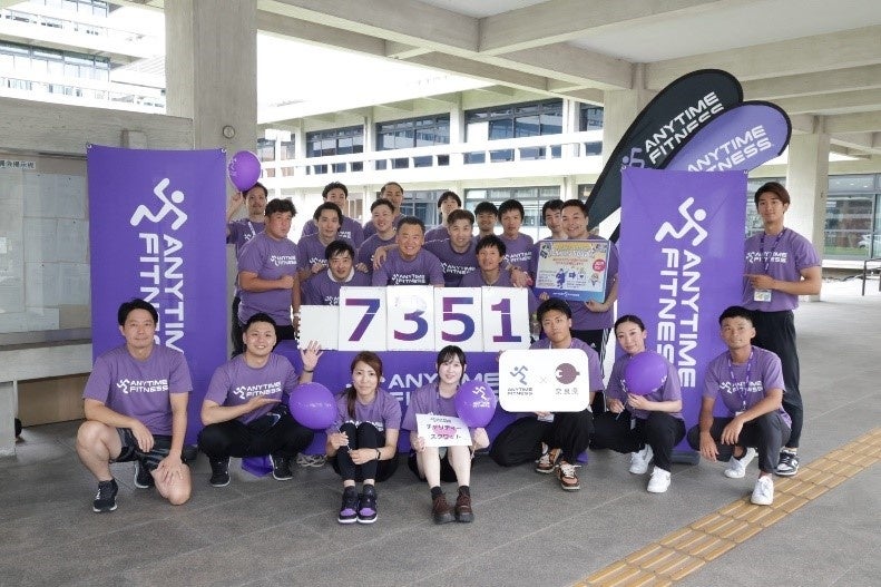 また、今回の締結を記念したイベントとして、締結式当日朝10時から奈良県庁1階東側回廊にて、エニタイムフィットネスが地域貢献の一環として寄付を行う、イベント参加型のチャリティ運動「チャリティスクワット」を行いました。雨天にもかかわらず延べ260名の方にご参加いただき、合計7,351回のスクワットを行いました。その回数に10円を掛けた金額である73,510円を、当社が奈良の鹿愛護会とスペシャルオリンピックス日本・奈良へ寄付を行い、締結初日に具体的な活動のキックオフを行うことが出来ました。